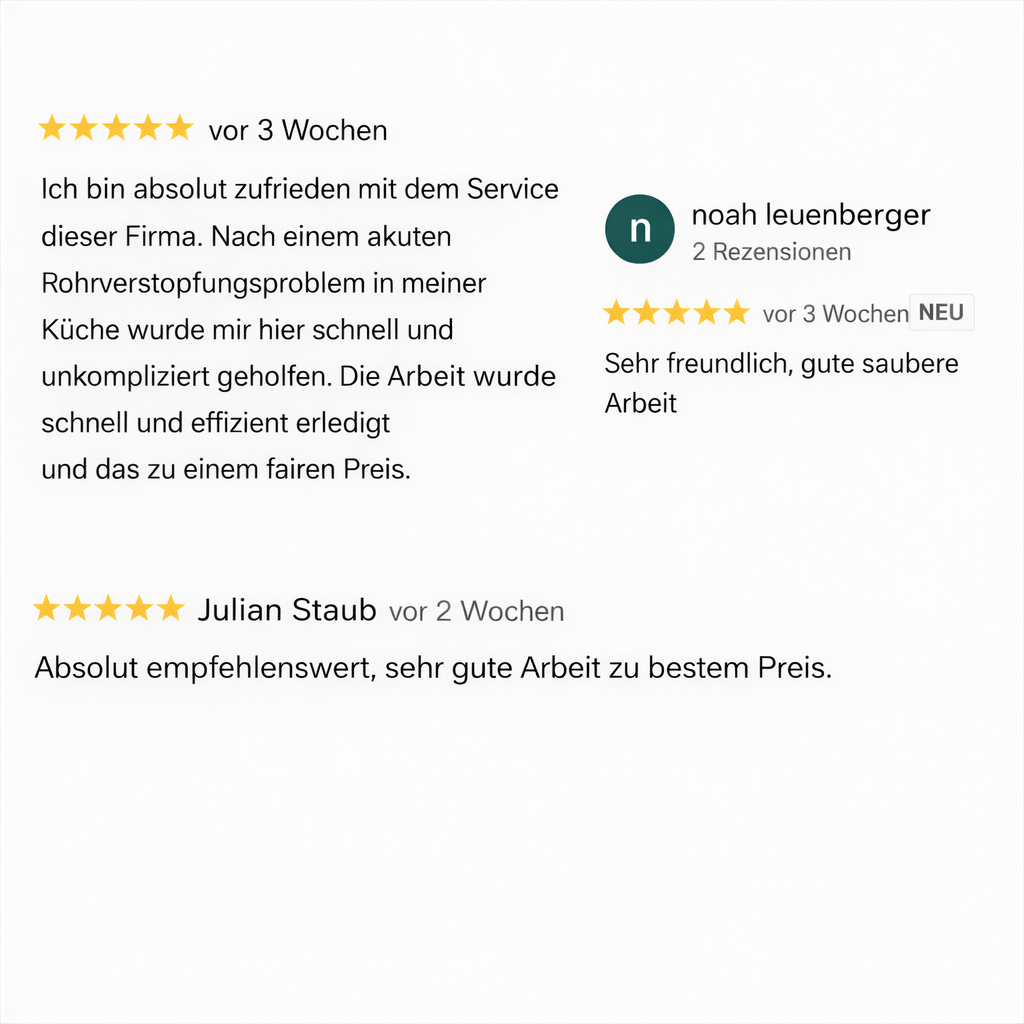 Wir lassen Sie nicht im Stich – auch nicht am Wochenende oder an Feiertagen. Als regionaler Fachbetrieb aus der Nordwestschweiz sind wir im Notfall schnell vor Ort und sorgen für eine sichere, saubere und fachgerechte Lösung.